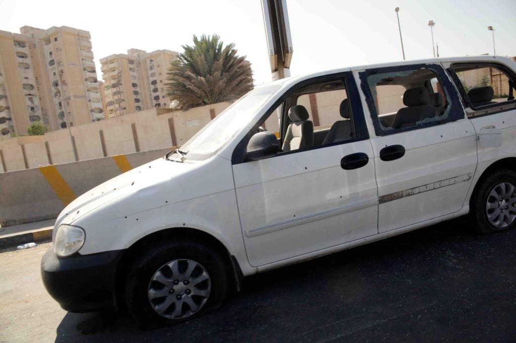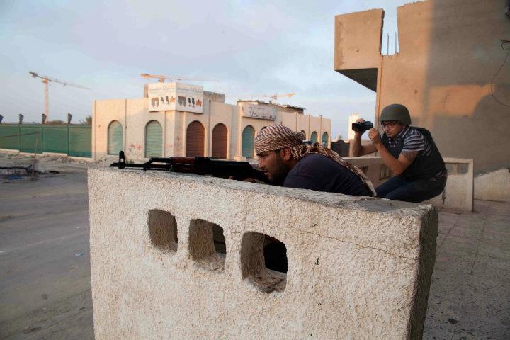 Riprendiamo il percorso. Sulla strada costiera arriviamo vicino alle Tripoli Tower, due alti palazzi uffici. In macchina siamo io, Elio, e altre tre persone. Un suv bianco come il nostro arriva dalla corsia opposta. Ha la bandiera dei ribelli sul cofano. I ragazzi scambiano quattro parole con loro, qualcuno fa una battuta, ridono. Vedo solo la canna del mitra spuntare dal lato del guidatore e sento gli spari e le urla. Ci sparano addosso dalla macchina bianca. Un’imboscata. i proiettili trapassano la carrozzeria, i vetri esplodono. Ci buttiamo fuori dal lato opposto. L’autista ha un proiettile nella gamba, perde sangue. Lo trasciniamo via cercando di muoverci il più velocemente possibile. Vedo una ragazzino su un balcone che mi fa un gesto. “Vai avanti, da quel lato”, dice senza parlare. Non respiro, ho il cuore in testa. Lasciamo il ferito a un gruppo di soldati. Mentre stiamo passando parte un colpo da un’arma, per sbaglio. Puntava l’Ak verso l’alto, il ragazzo accovacciato a terra. Attraversiamo Omar al Mukthar street. E’ un lungo viale e dal fondo, da dei palazzi lontani, sparano i cecchini. Le tecniche, con i loro calibri antiaerea, vomitano fuoco a casaccio verso i bersagli. Sparano tutti.